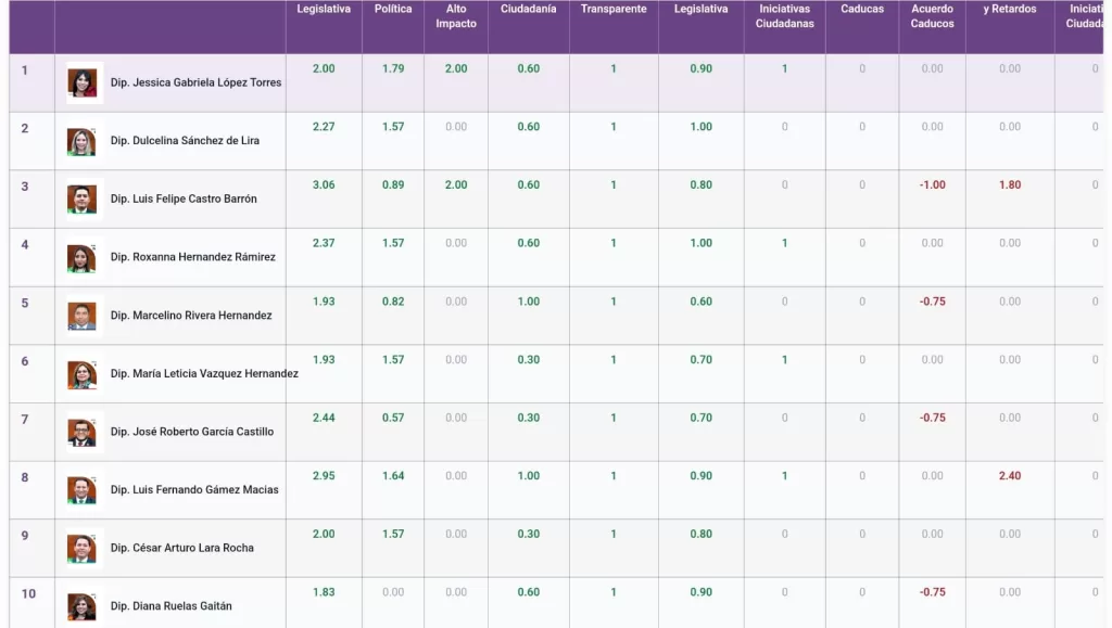 San Luis Potosí, SLP.- Tras una pausa en la difusión de resultados, la organización Congreso Calificado aprobó únicamente a dos legisladores locales, en su Cuarta Evaluación Trimestral, de la LXIV Legislatura.