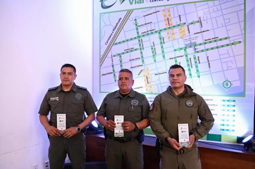 Mediante una planeación vial integral que se implementará de manera gradual, durante las próximas semanas, se fortalecerá la movilidad eficiente y  la seguridad vial de todas y todos quienes se desplazan en el primer cuadro, declaró el titular de la Guardia Civil Municipal, comisario Víctor Aristarco Serna Piña; acompañado del director de Seguridad Vial, Edgar Horacio Obregón Coronado y del de Fuerzas Municipales, Ulises López Rendón.