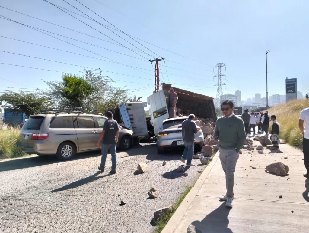 Tráiler sin frenos provoca carambola en Circuito Potosí; al menos ocho vehículos dañados