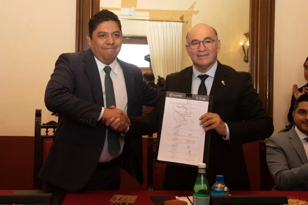 San Luis Potosí, SLP.- En Sesión Solemne por la conmemoración de los 433 años de Fundación de la Ciudad de San Luis Potosí, el Presidente Municipal Enrique Galindo subrayó los logros y nombramientos recibidos por la UNESCO, la ONU y otros organismos internacionales, como el reciente nombramiento como Ciudad Creativa, «con lo que demostramos resultados a favor de las potosinas y potosinos». También destacó la estabilidad y armonía política que hay en la entidad con el liderazgo del Gobernador Ricardo Gallardo Cardona